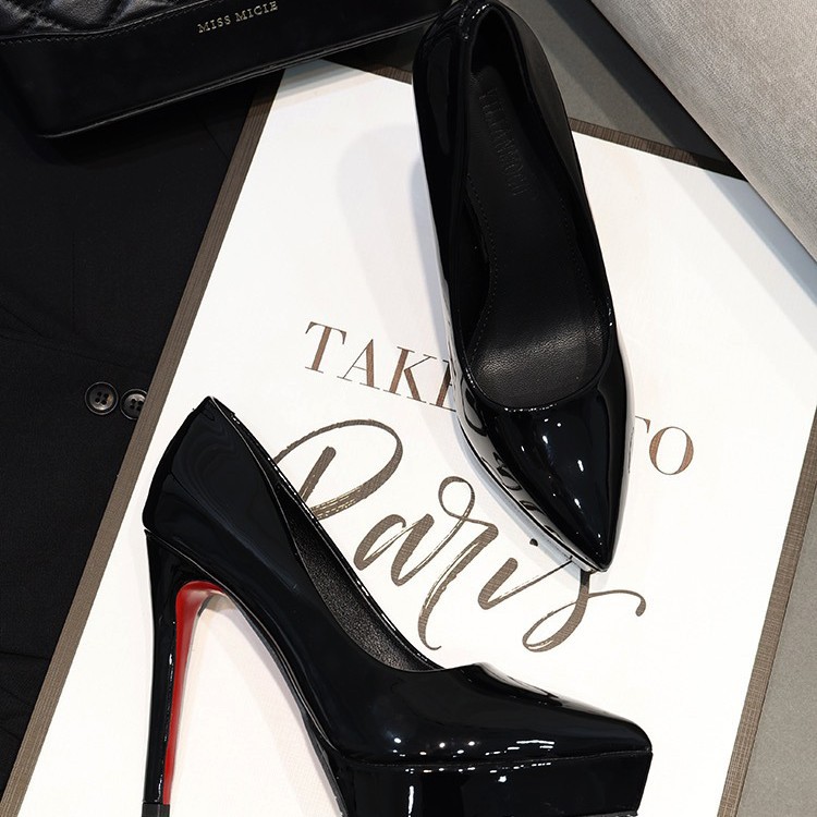 2024新型10cm春秋12cm先のハイヒールの細い靴のセクシーな防水台の夜の黒い女性靴