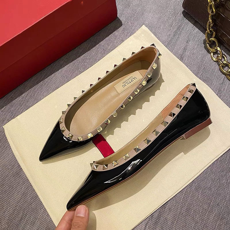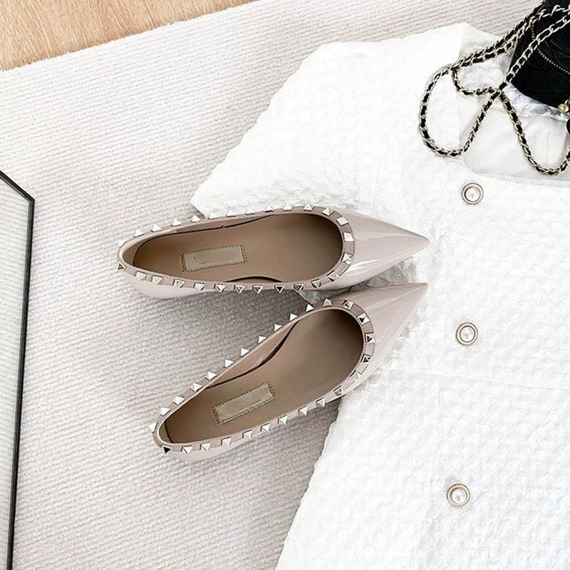 2024春リベット靴の先の平底靴の女性バレエ靴の漆皮ファッション平と船靴の足の靴のパンク