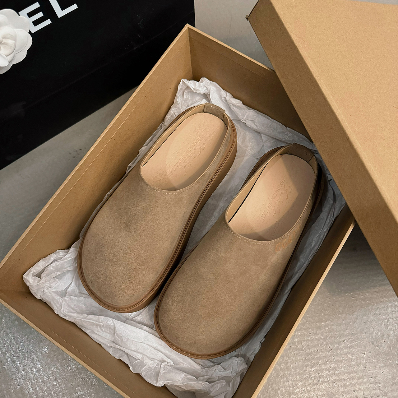 フランス風の気質の厚い底の頭の半分のスリッパの女性の秋の外はスカートの2024の新型の超火の怠け者の布の靴を配合します。