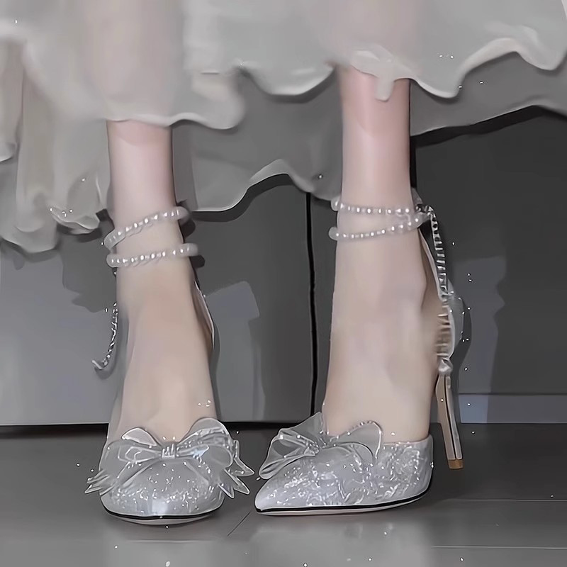 香槟金银色高跟鞋女2023年新款细跟鞋高级感小众婚鞋秀禾婚纱两穿