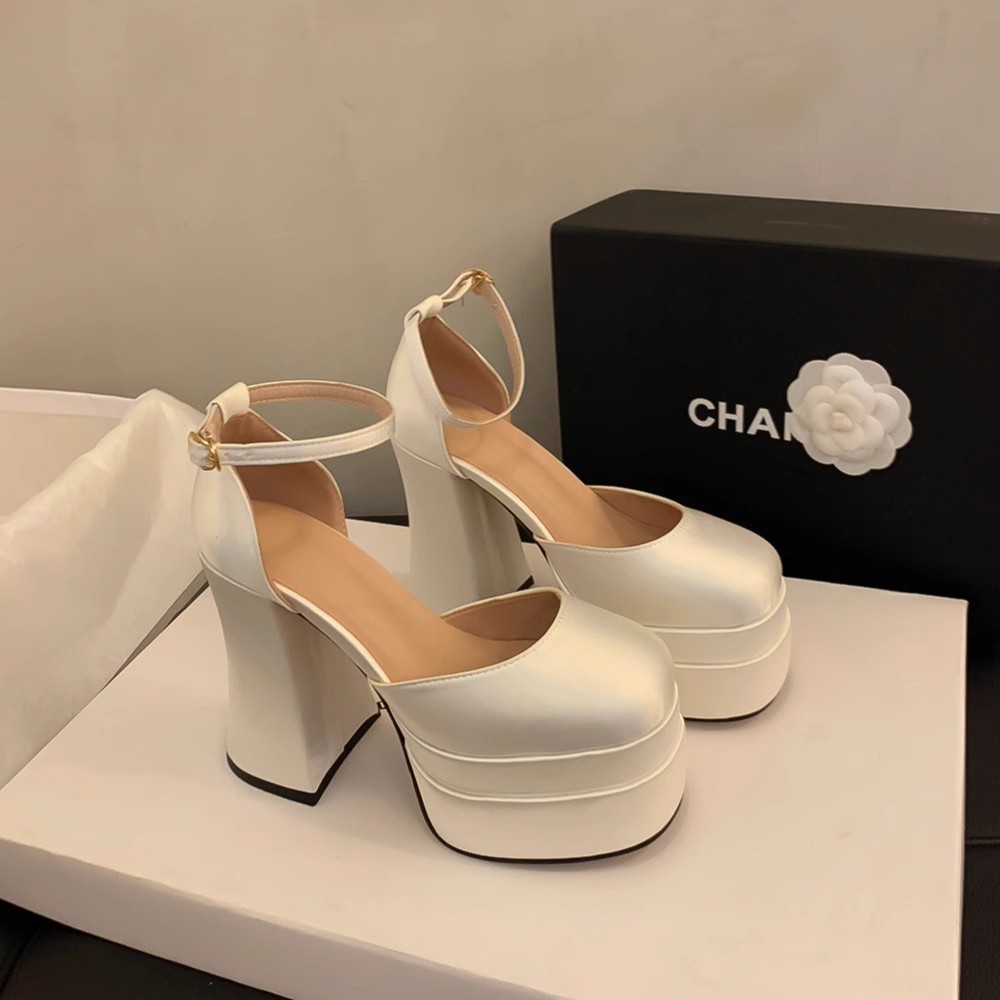 ハイヒールの靴の女性の2024年の女性の春秋の新型のファッションの浅い口の復古の方頭の太さと防水台のメアリー珍