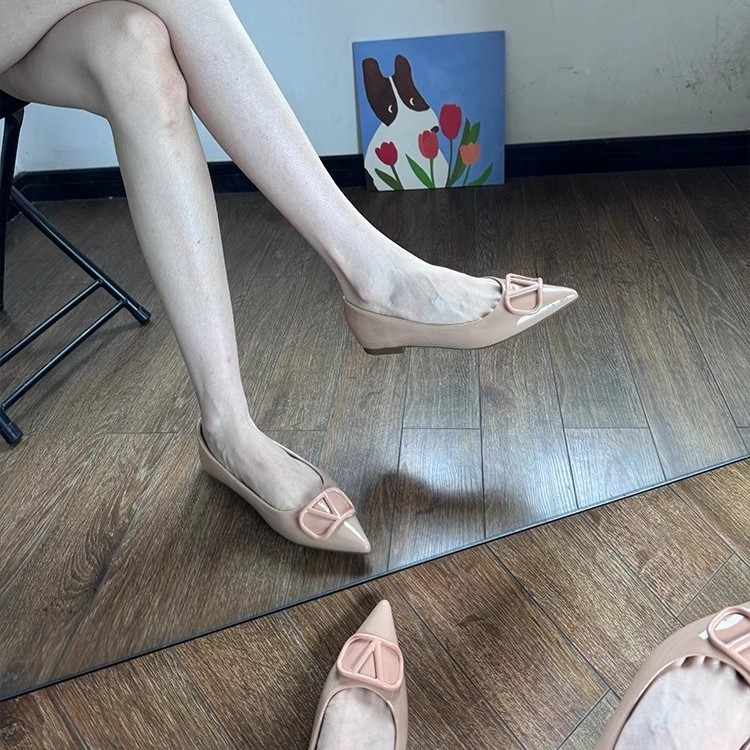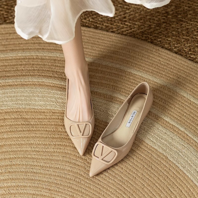 2025年の新型春秋フランスの裸色の中で高くなった先の平底の靴の女性の浅い口の靴の通勤のファッションの靴