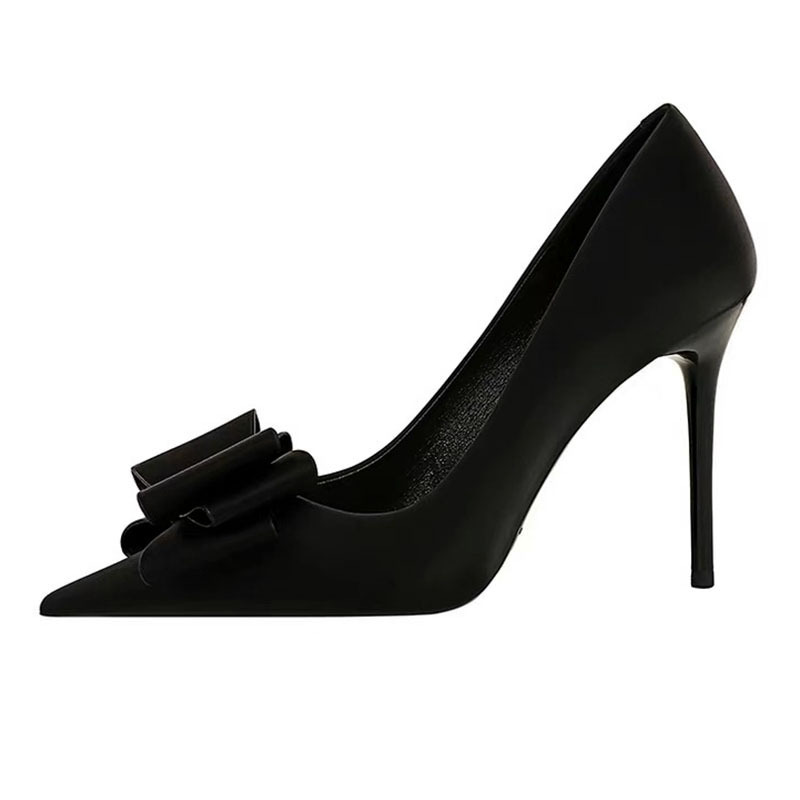 甘い蝶結びのハイヒールのセクシーな細いヒールの浅い口の先の側の空の透かし彫りの韓国版のファッションの秀気の靴の女性