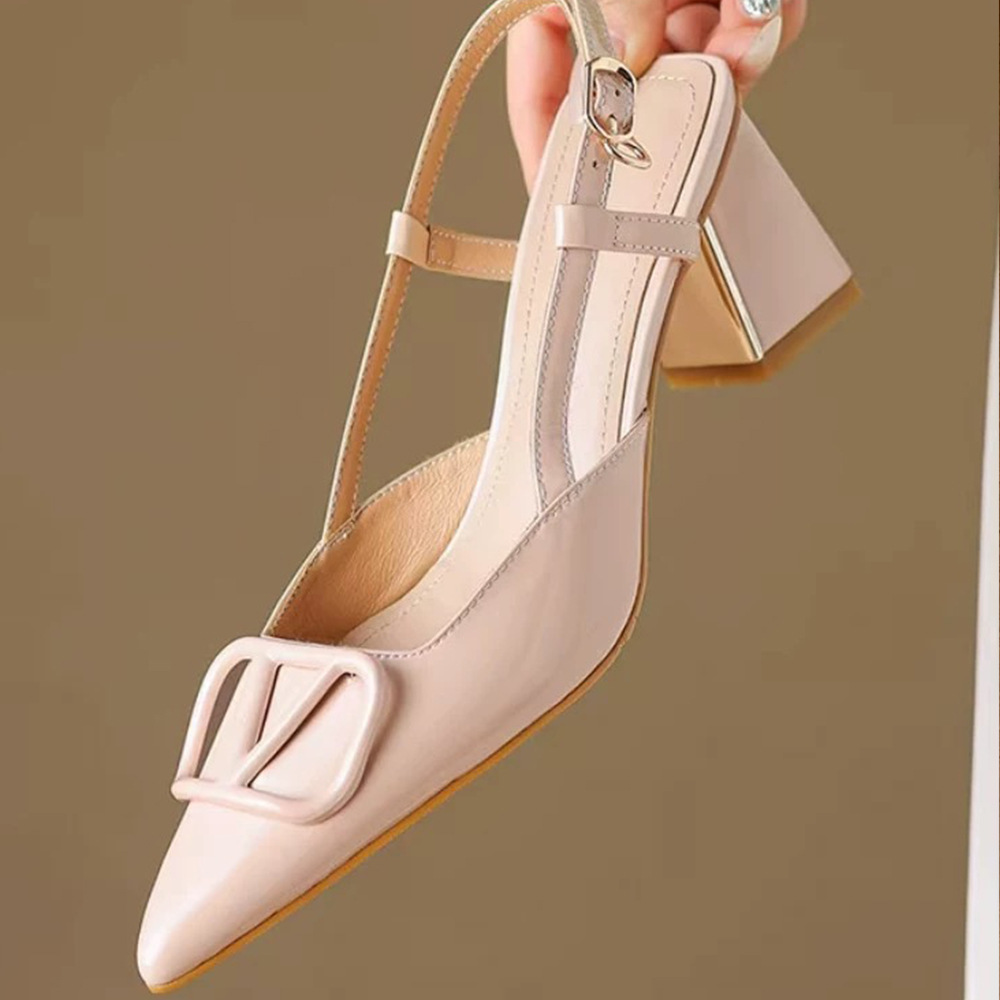 2025年夏の新型黒漆皮の細いハイヒールの後の空の靴の気質の女性の靴の小さい衆の先のサンダル