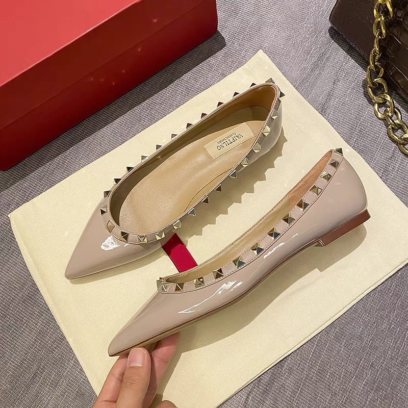 柳丁の平底靴の女性の靴の女性のファッションの浅い口の柔らかい底の靴のバレエの小さい香の風のリベットの先のマックの2024の新型