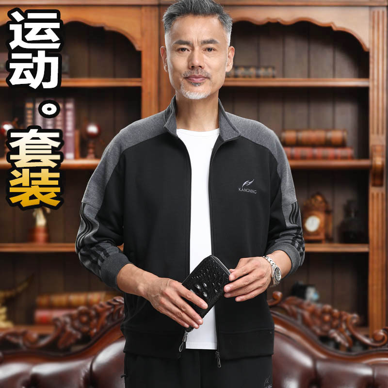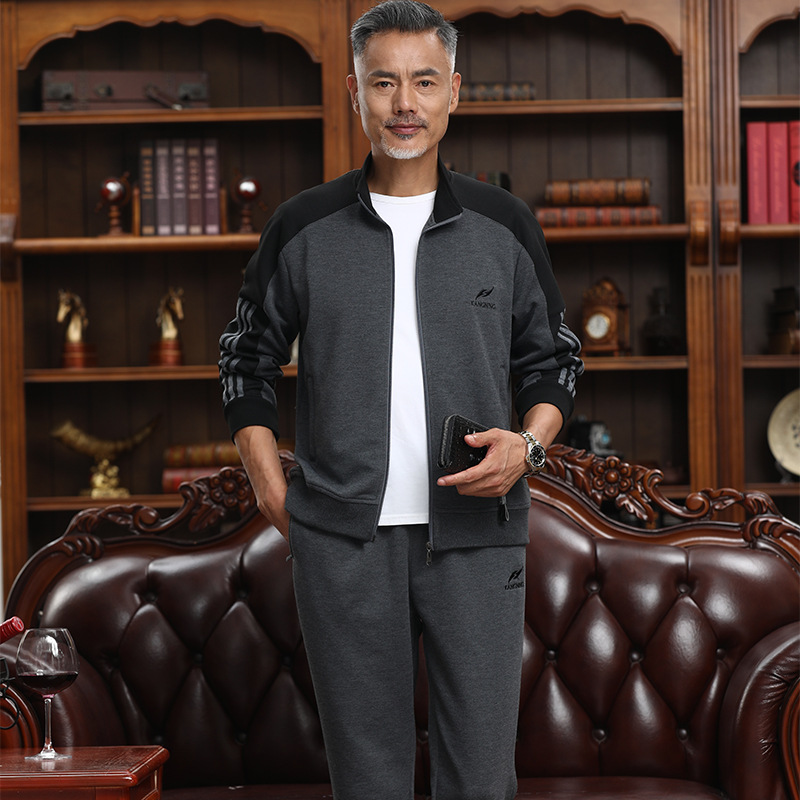 春と秋の中高年男性のスポーツスーツの上着とズボンのお父さんは新型の長袖のスポーツ服を着てゆったりしています。