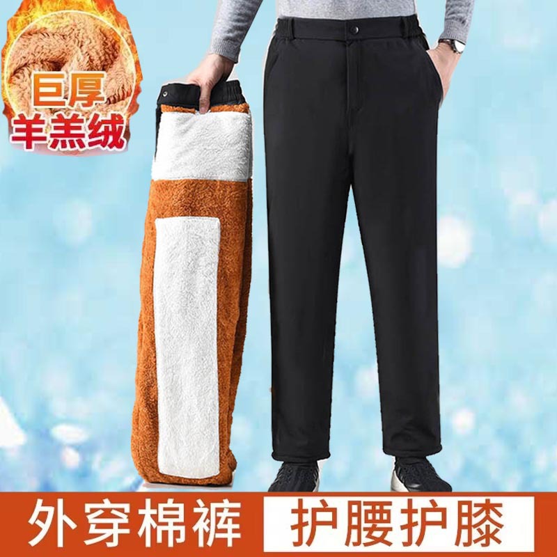 中高年綿ズボン男性にベルベットをつけて、お父さんの腰の高い防水防風防寒綿ズボン男性の外にゆるい冬を着る