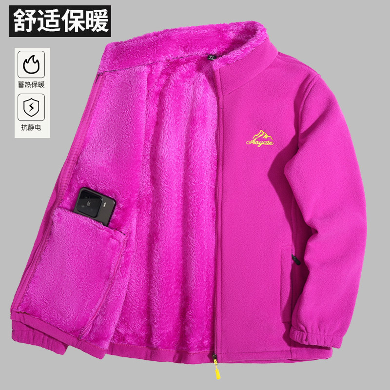 レディース秋冬厚手スウェット、ポーラーフリース裏地付きジャケット、カジュアルフリース、保温性のあるアウター、スタンドカラー、裏地付き、メーカー直販