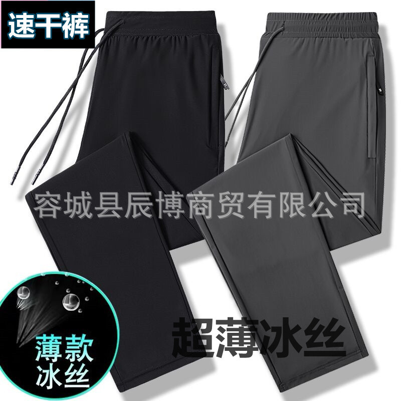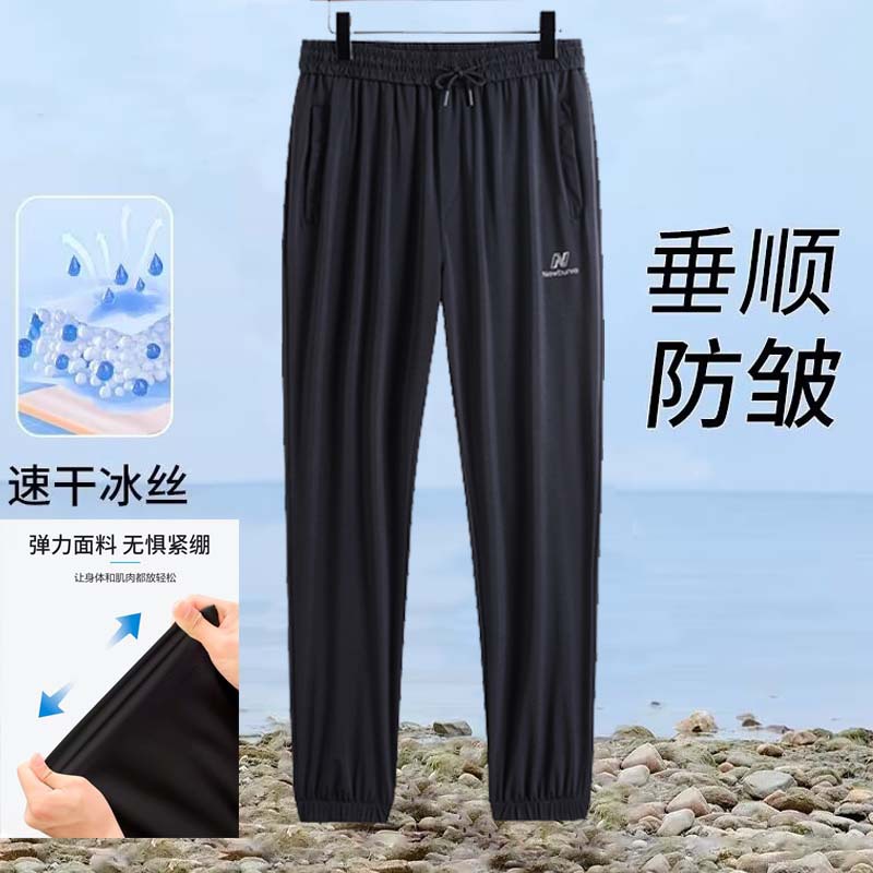 氷糸長ズボン男夏薄手速乾ズボン運動大サイズカジュアルストレートゆるい弾力垂れ感通気長ズボン