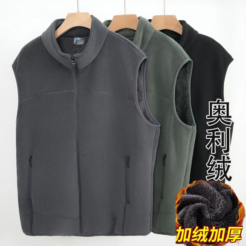 秋冬のベルベット保温フリース馬甲の中高年男性がベルベットのコートをつかむ