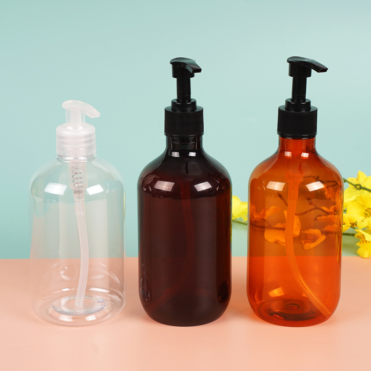 500ml茶色プラスチックpetボトルプッシュシャンプーローションボトルプラスチックラベル印刷ブラウン茶色入浴露ボトル