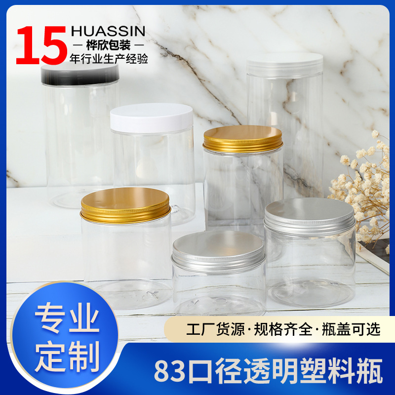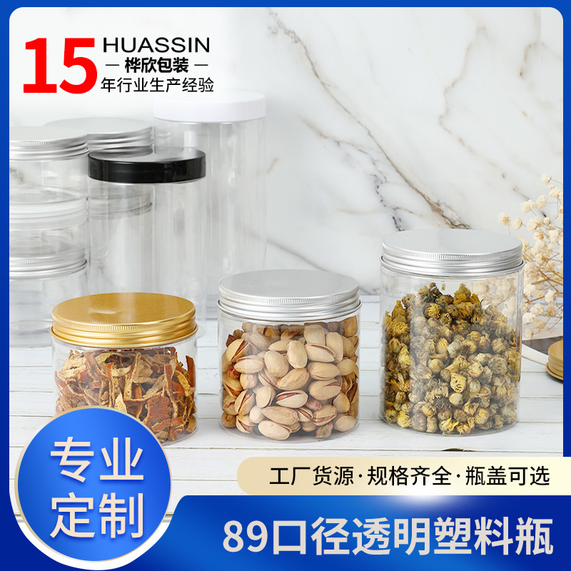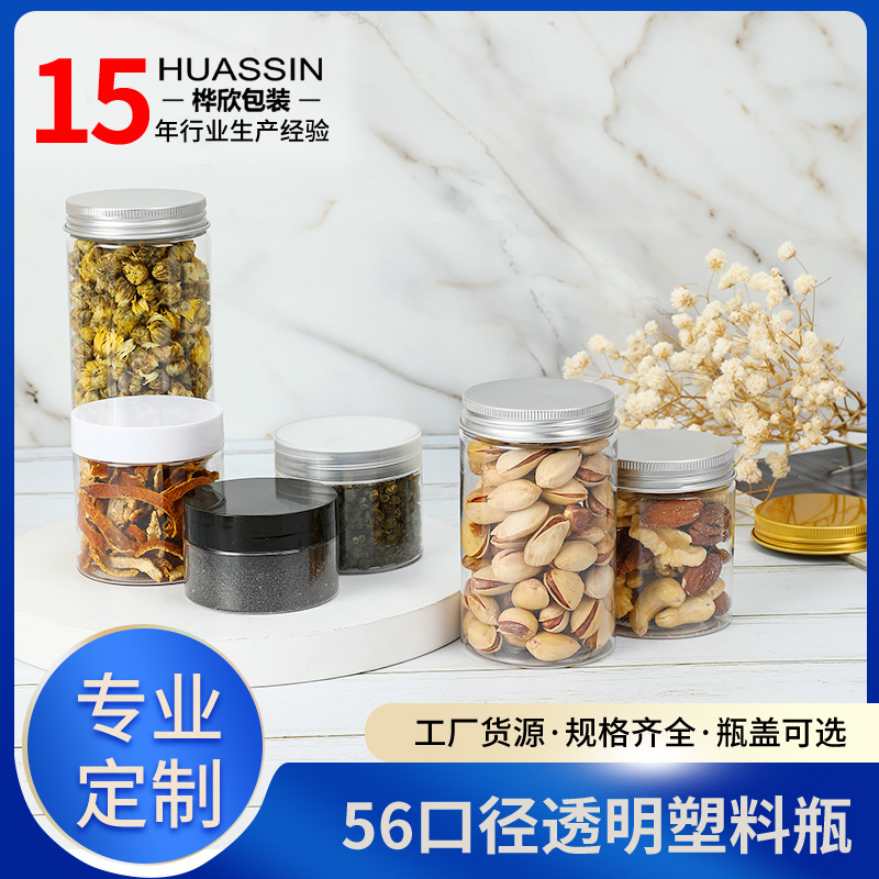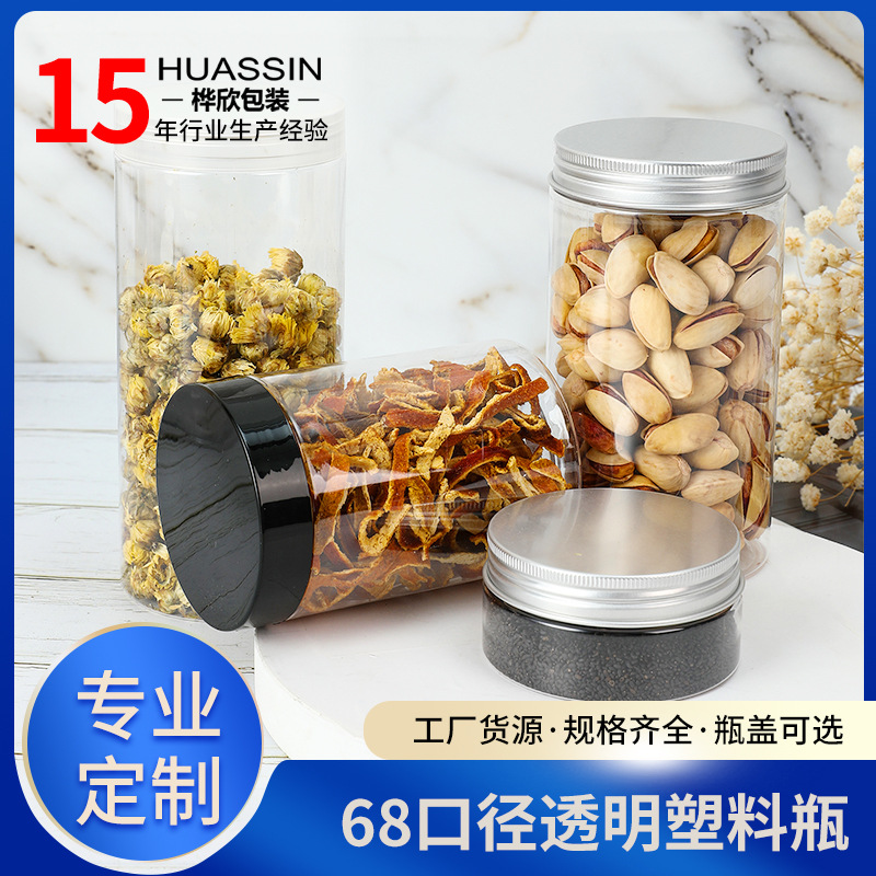 スポット卸売りpet食品密封缶アルミ蓋ドライフルーツ間食花茶瓶包装広口透明プラスチック缶