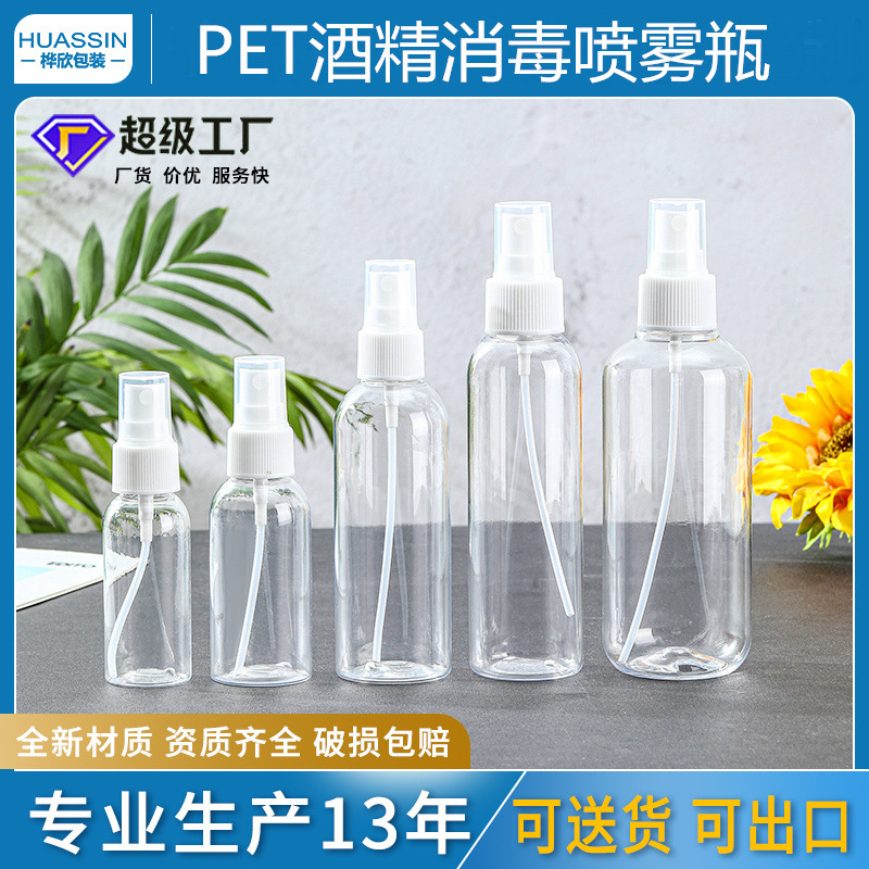 スポット100mlアルコールスプレーボトル细かいミストプラスチックボトルpetポータブル消毒液分注小さなスプレーボトル卸売