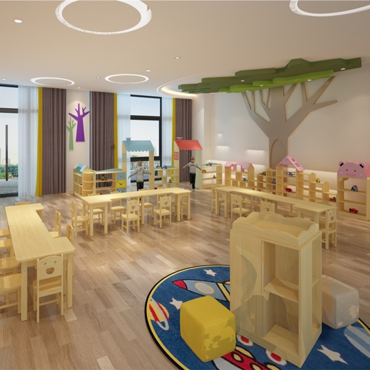 幼稚園の木の本のカバンの箱の子供はドアの服の帽子の箱のおもちゃの箱のコーナーの箱の樟子松の区域の箱の組み合わせの箱を持っています。