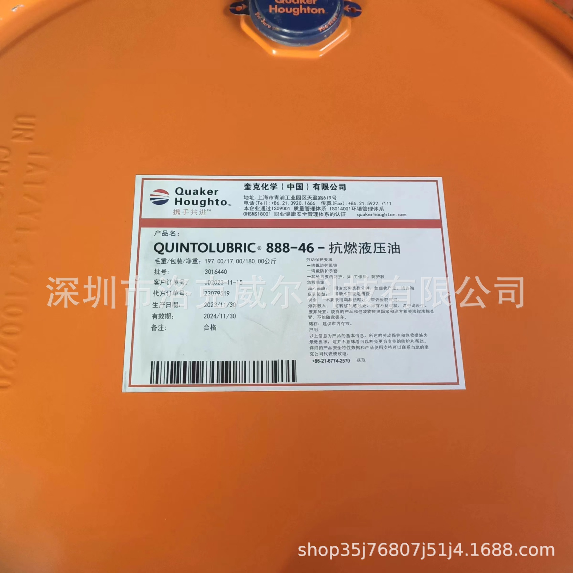 クイックフーデン 888-46 防火性作動油 QUINTOLUBRIC888-68 ポリオールエステル作動油