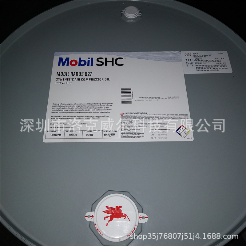美孚ラルス SHC824 エアコンプレッサーオイル RarusSHC826 827 829 合成空気圧縮機オイル