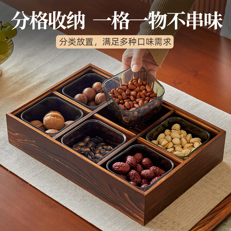フルーツプレート無垢材ドライフルーツボックス新中国風茶トレイリビングルームホームナッツトレイコンパートメント蓋付きキャンディボックス卸売