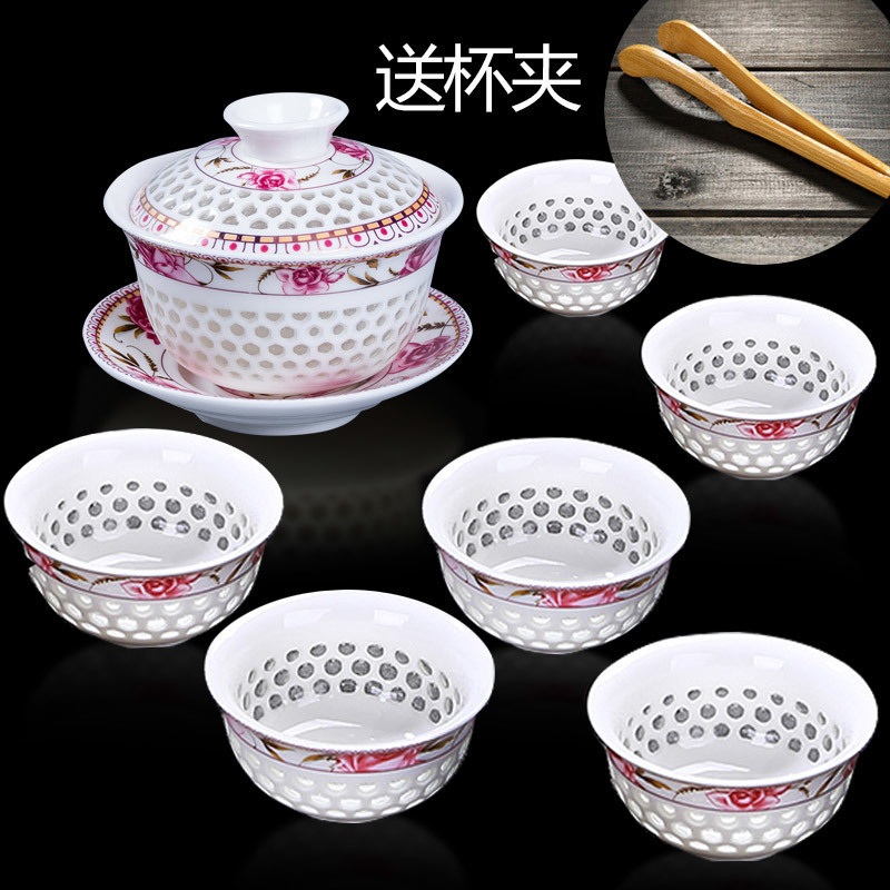 氷の結晶絶妙なセラミックティーセット完全なセット中空青と白の金糸カンフーティーセットカバーボウルティーカップセット送料無料クロスボーダー