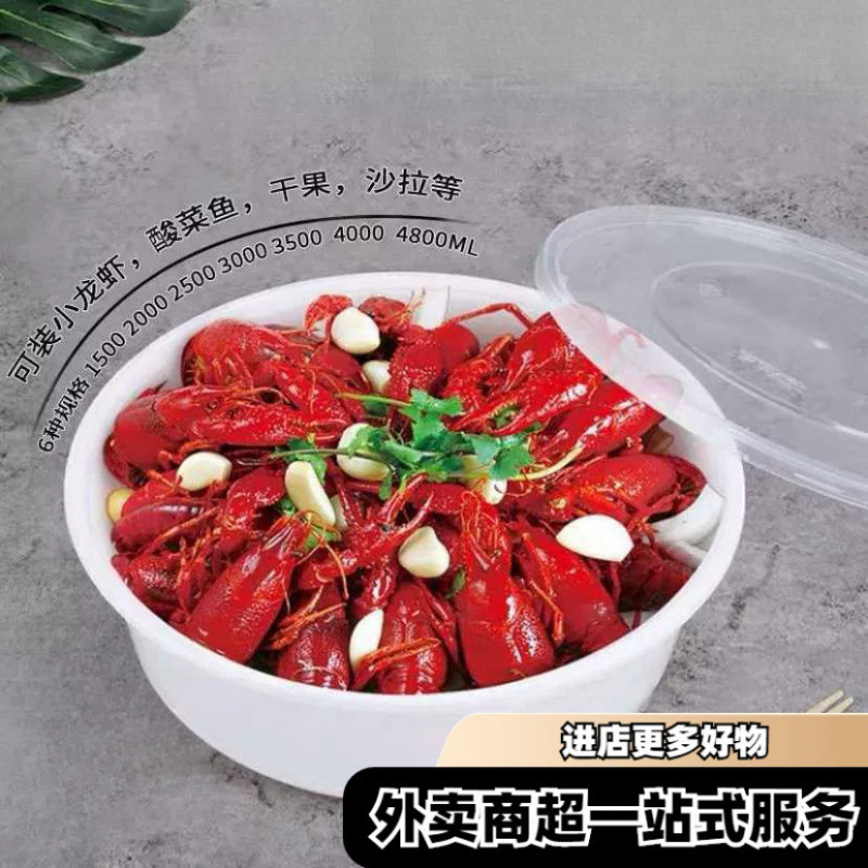ラウンド 3000 ミリリットル使い捨てランチボックス蓋付きテイクアウト包装箱厚みのある透明な大型盆地包装ボウル
