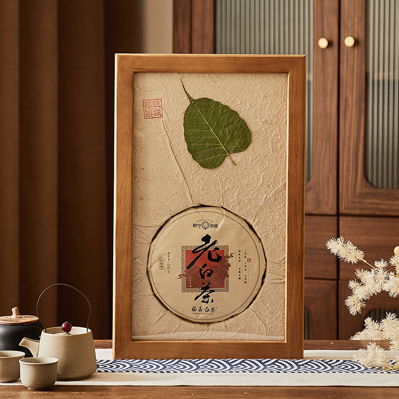 フォトフレーム茶餅包装箱プーアル茶餅展示棚実木単餅装飾礼箱老白茶収納箱