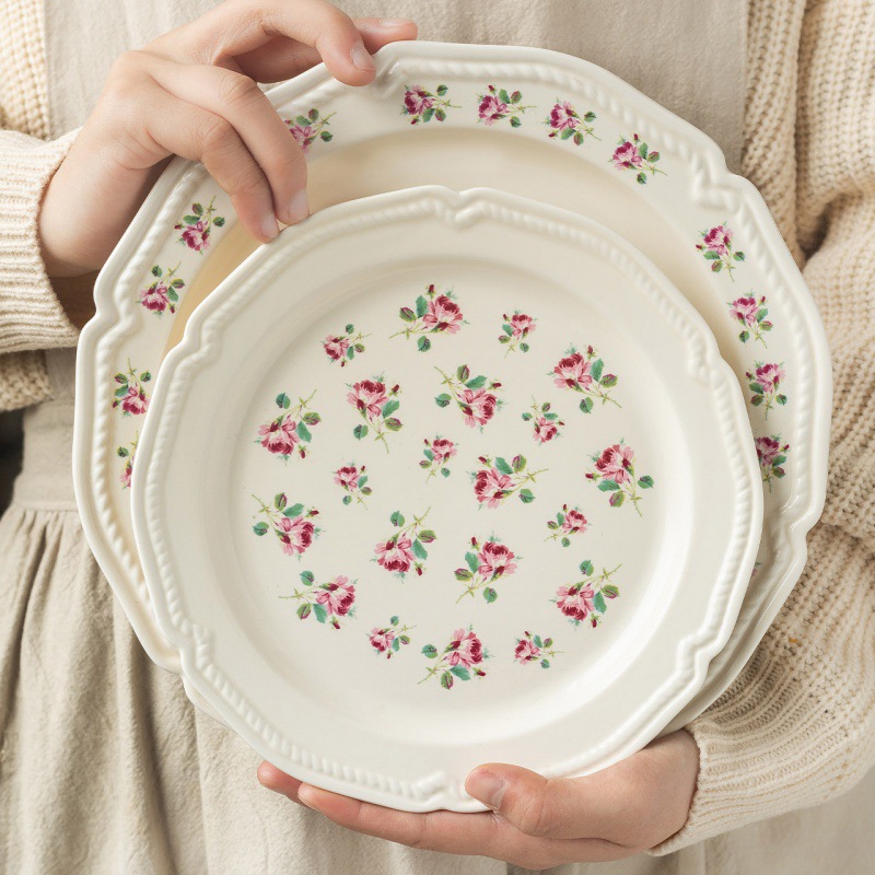 フレンチレトロローズ食器洋食ステーキ皿風砕花サラダボウルケーキ皿朝食皿