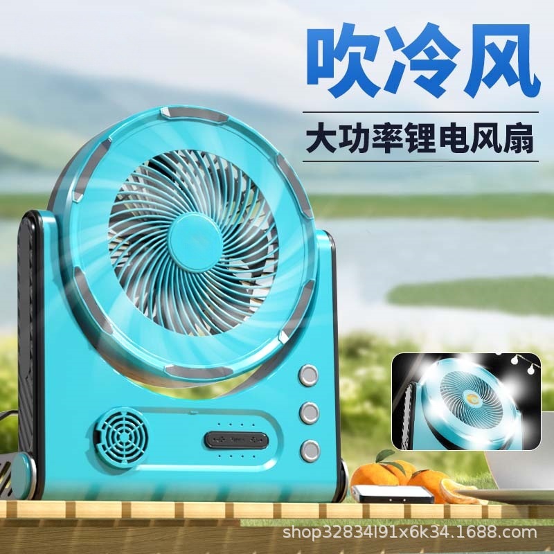 国境を越えた超長航続リチウム電池充電ファン8インチ家庭用屋外ポータブル大風力タービンファン池