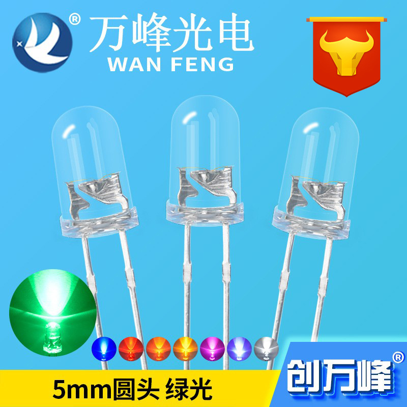 メーカー直販発光ダイオードledランプf5透明白髪緑色5mm青緑色ランプ直挿し電球