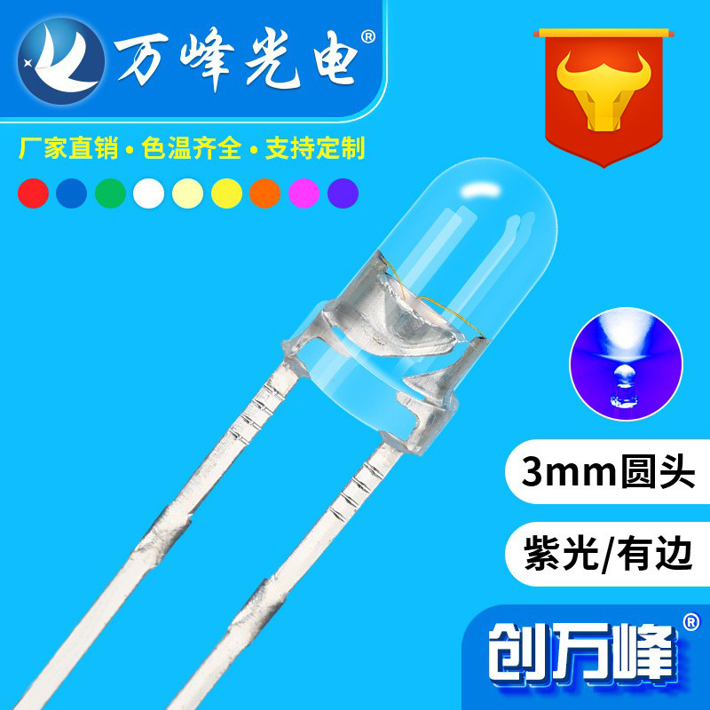 F3紫色発光ダイオード電球3mm紫色光小電球leduvランプ検査紙幣偽造防止電球