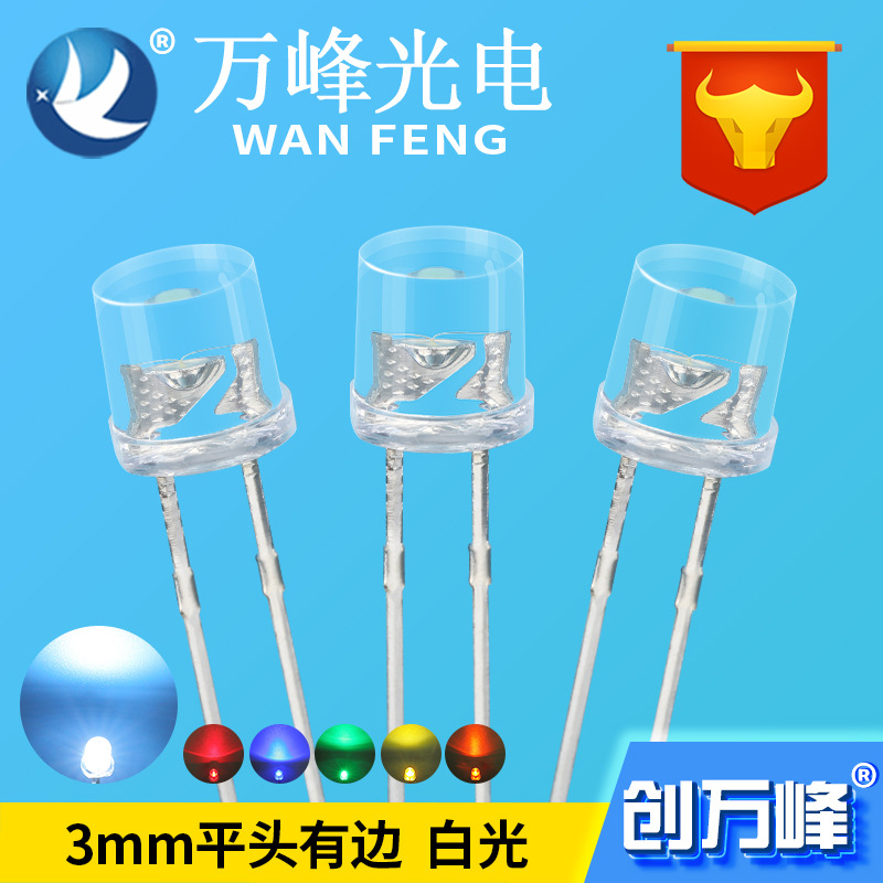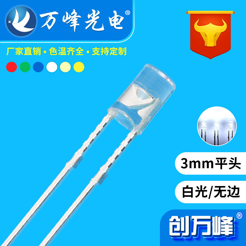 3mm平頭led電球f3縁なし平頭透視赤黄青緑色led発光ダイオード