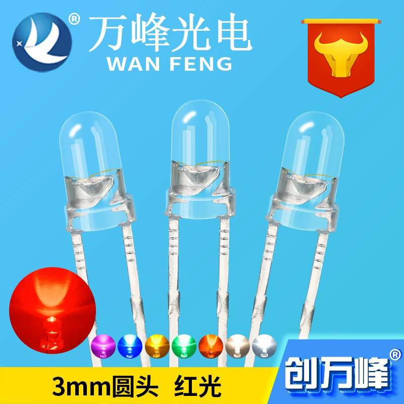 発光ダイオード3mm/f3平頭led電球は透明に辺白赤黄青緑色led直挿灯がある