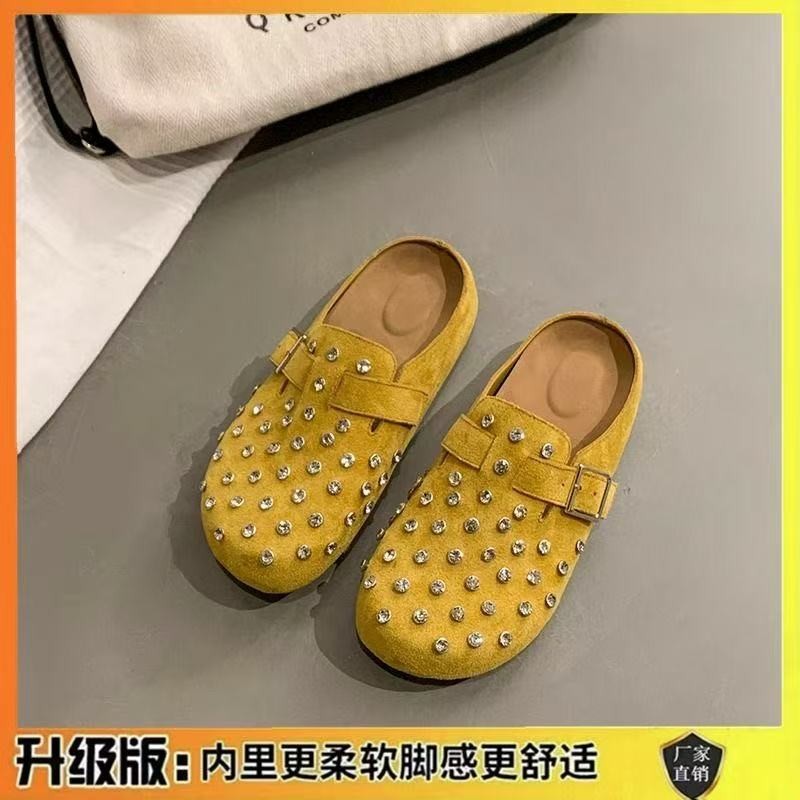 ベーケン靴の女性2025春の新しい柳の釘のドリルのベルトのバックルの頭の半分のスリッパの足は怠け者のミュラーの靴を踏んでいます。