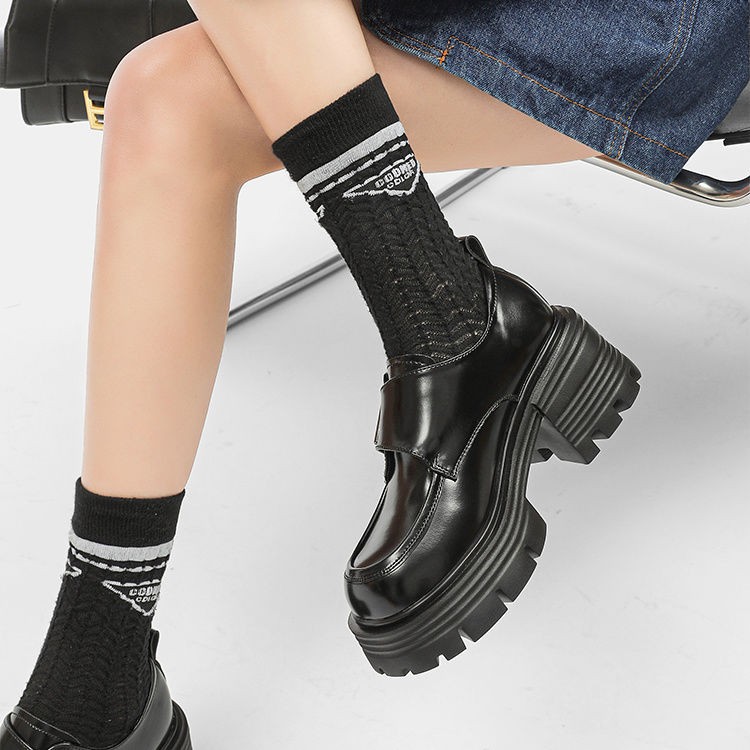 厚底英国スタイルの小さな革靴春と秋の黒の気質の女性のための靴 2024 新しい女性の靴フレンチローファーパンケーキ