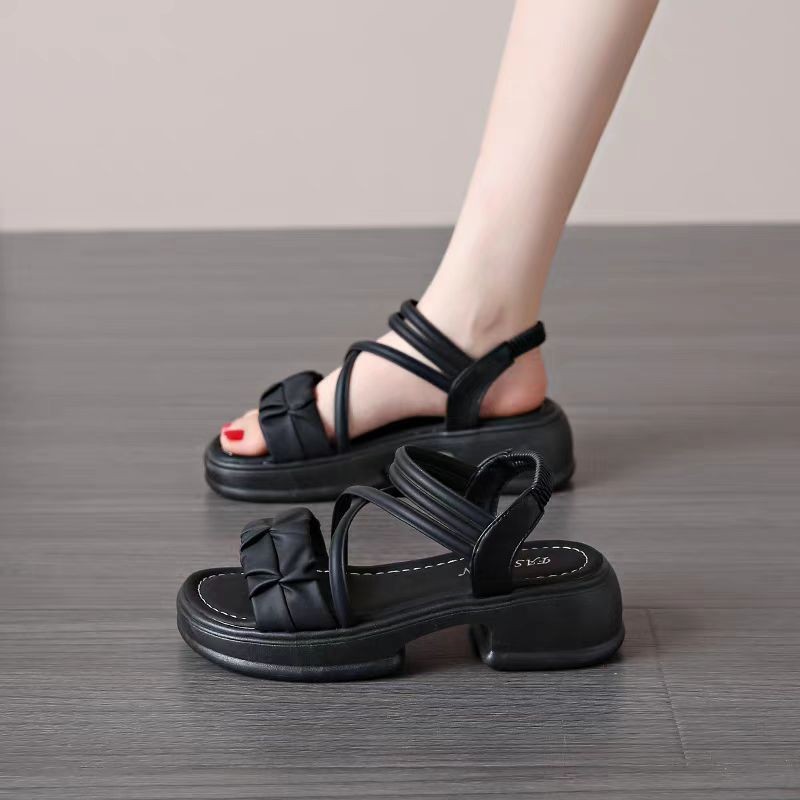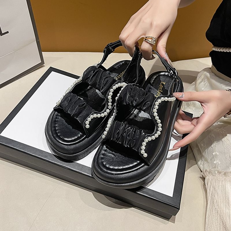 夏のアウターウェア用の軽量厚底スモールフレグランスサンダル、新しいプラットフォームソール、柔らかいソール、滑り止めのローマンシューズ、女性用多用途