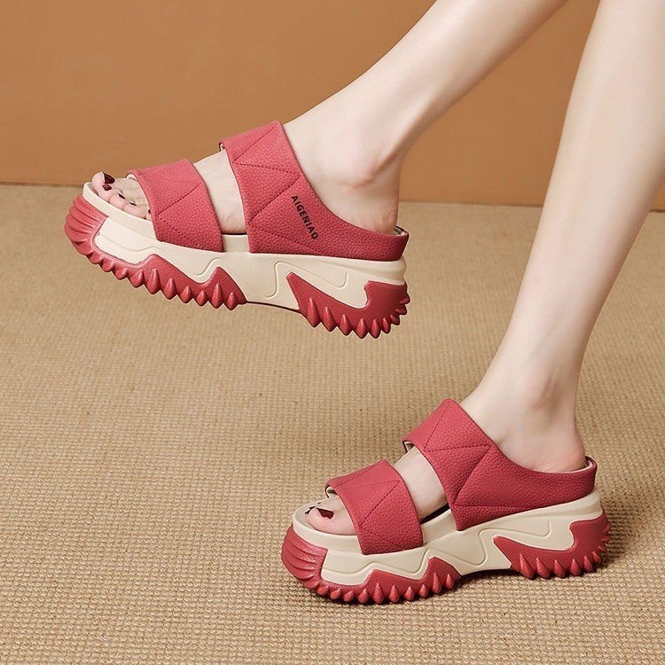 フランス製本革厚底ビーチサンダル2025新作夏アウター厚底ビーチシューズ軽量サンダル