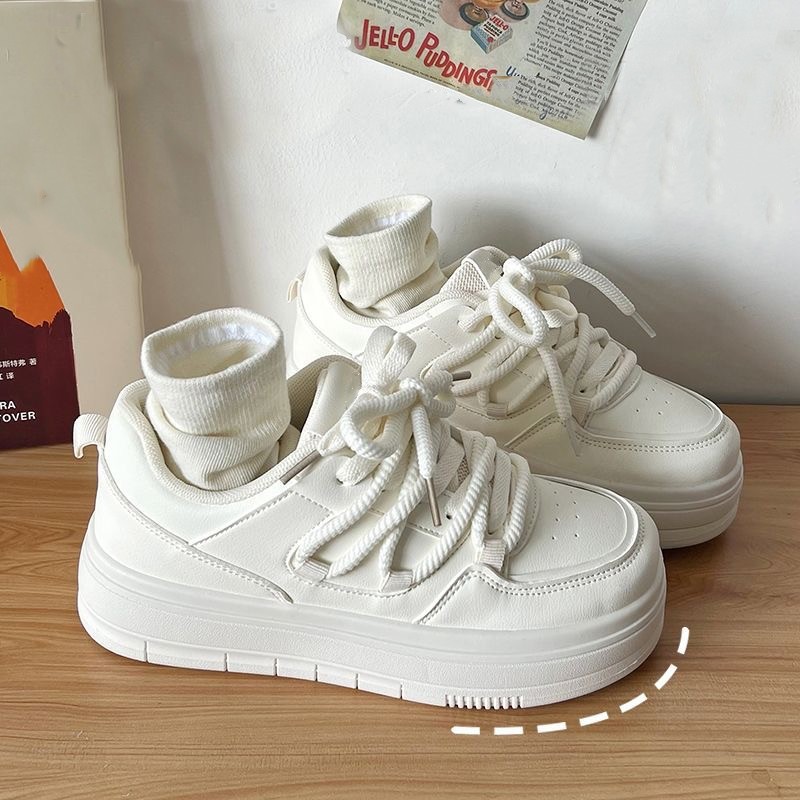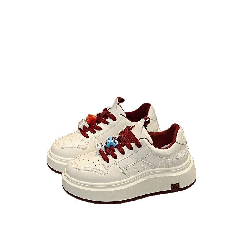世界の小さな女性靴の厚い底の白い靴の女性の春の2025新型の爆発的な学生は運動靴の板の靴を合わせます。