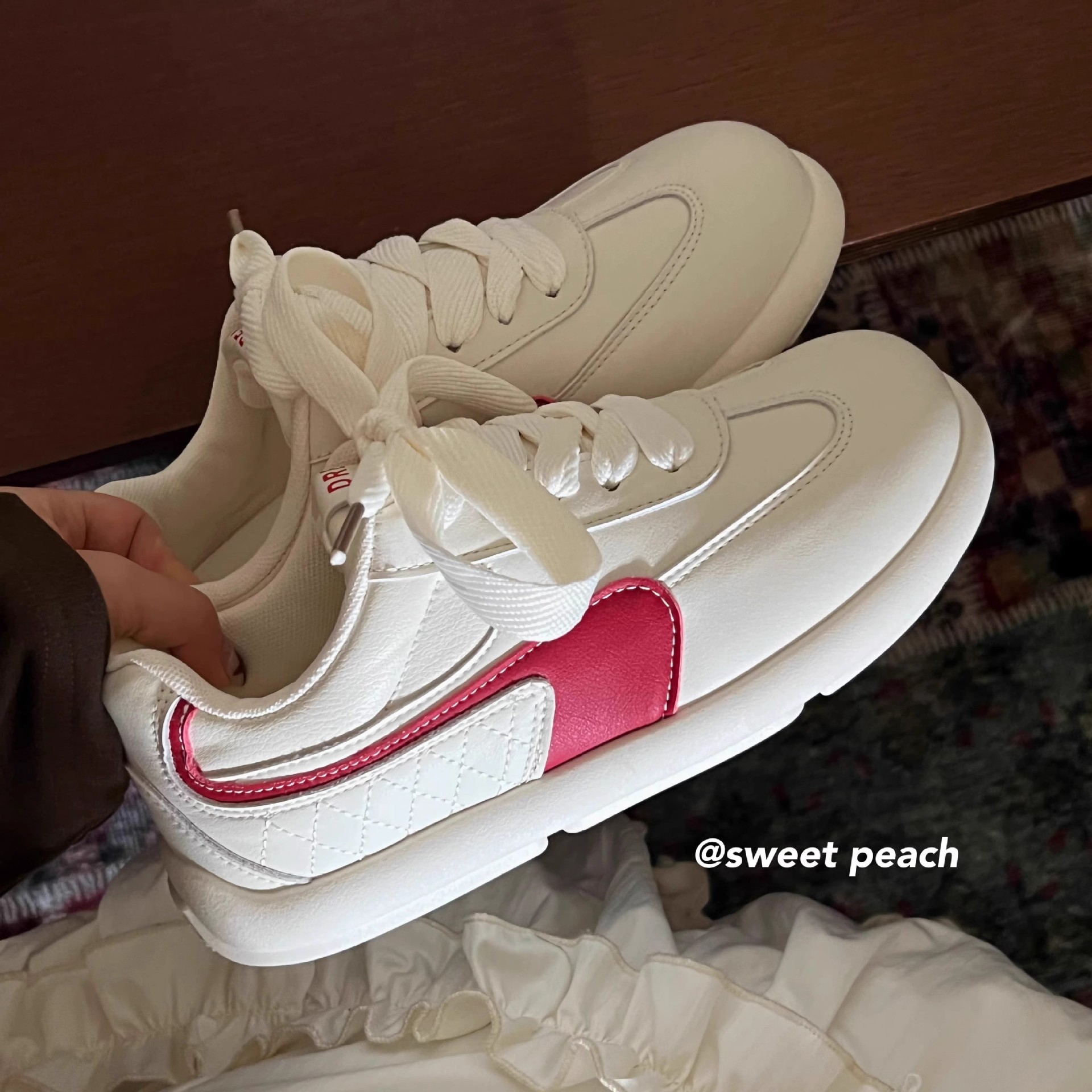 香港風の厚い底のパンの靴の女性の大衆の潮流の2025年の春の新型のレジャーはスポーツの白い靴を合わせます。
