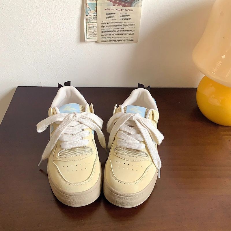 ルルの卵の板の靴の女性の金の2025年の春の新型の百合のchiの靴の女子学生の厚い底の小さい白い靴の徳訓の靴