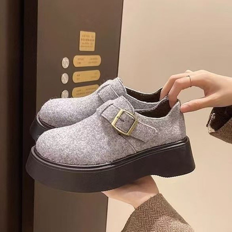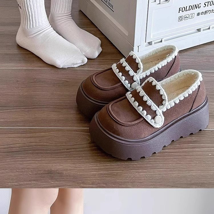 厚い底の毛ですね。ベーケン靴の女性2025春の新型の松餅レトロな百合の爆発的な靴を履いています。