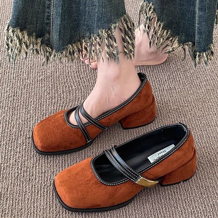 フランスのレトロな四角い頭のメアリー珍靴の女性2025の新型の春の爆発金は疲れません。