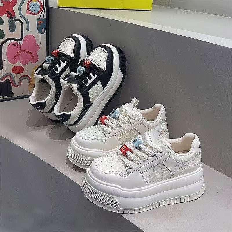 本革の白い靴の女性2025春の新型カジュアルシューズの厚い底が高くなります。