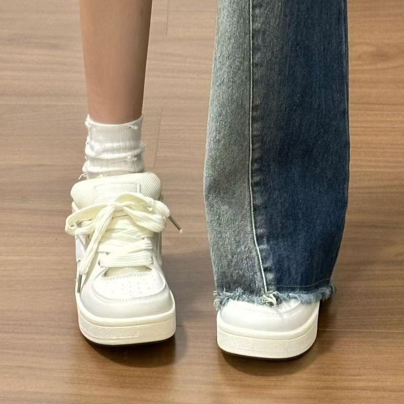 起爆の白い靴の女性2025春の新型の小衆の厚い底の百合のパンの靴の平底の運動の板の靴のinsの潮