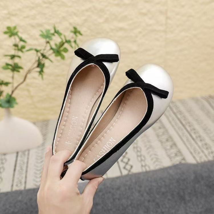 フラットシューズ春と秋の超柔らかい夜の靴は怠け者の女性靴のアクセサリーを踏んでいます。