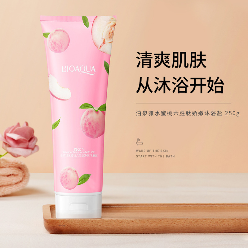 Boquanya ピーチ乳酸菌バスソルトフォームは、さわやかで潤いを与え、滑らかで優しく洗浄力のあるボディクレンジングバスソルトです。