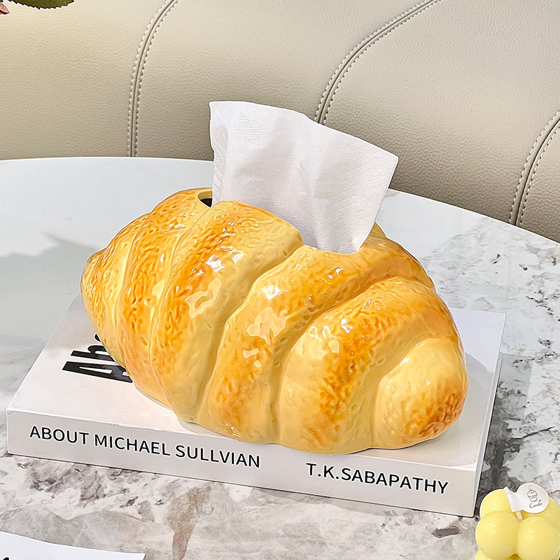 かわいいクリエイティブクロワッサンペーパータオルボックスイン高価値リビングルームライト高級装飾品ホームコーヒーテーブル紙引き出し