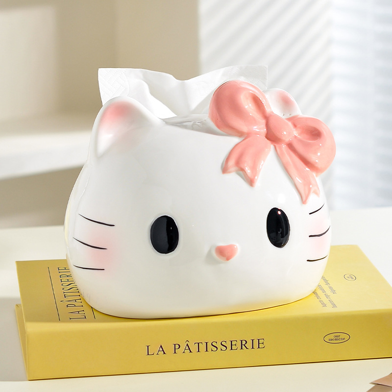漫画猫ティッシュボックスリビングルームデスクトップセラミックティッシュボックスホームハイエンド装飾品クリエイティブナプキンボックス新スタイル