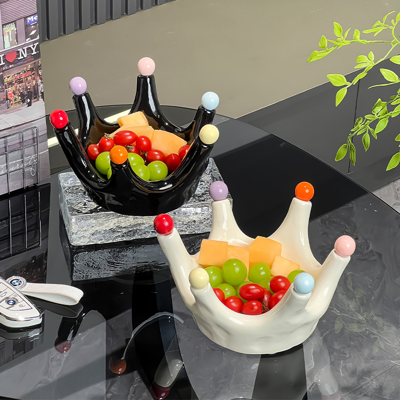 クラウンセラミックフルーツプレートリビングルームコーヒーテーブルスナックデザートディスプレイプレートコーヒーテーブルドライフルーツプレートフルーツフォーク兼用