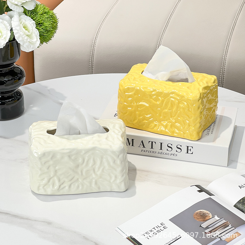 ライト高級バッグティッシュボックスセラミックデザインハイエンドリビングルーム紙引き出しホーム装飾品クリエイティブナプキンボックス