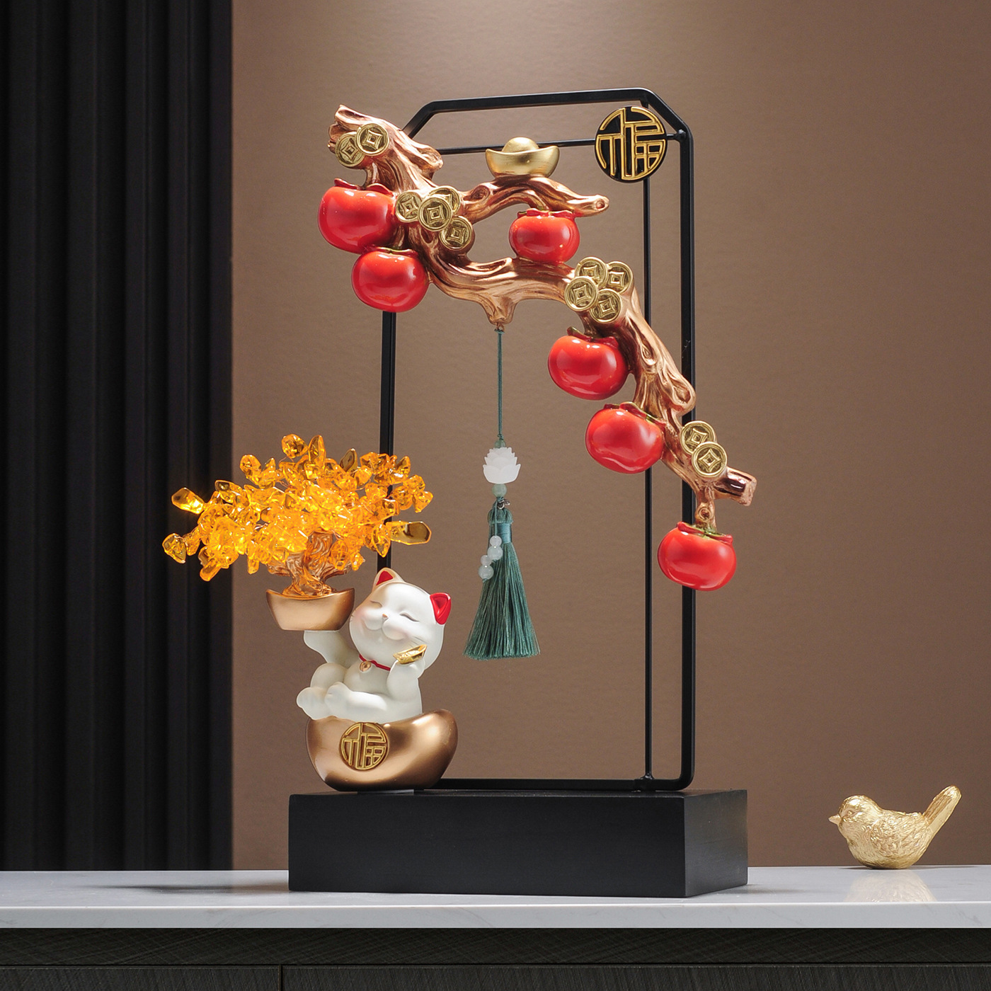 柿柿如意招き猫装飾品リビングルーム玄関ホールワインキャビネットテレビキャビネット新中国風の装飾ハイエンド新築祝いギフト