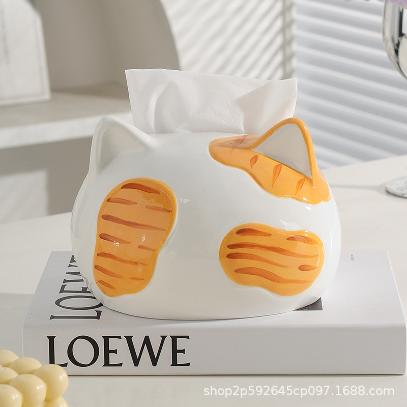 かわいいオレンジの猫のティッシュの箱の客間のお茶のいくつかの家庭用の置物のアイデアのデスクトップの紙は箱の陶磁器を引き出して紙の箱の高い顔の値を引き出します。