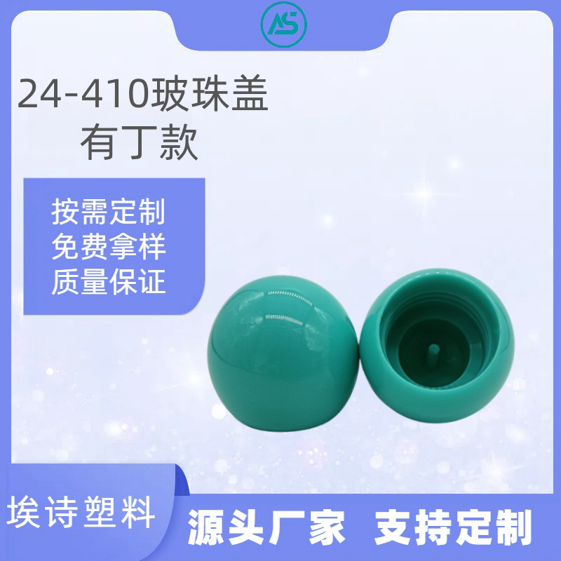 24歯のガラスの玉の蓋の24-410は丁の種類の乳液のスキンケアのボールのプラスチックの瓶の蓋の半円のボールの型の蓋があります。